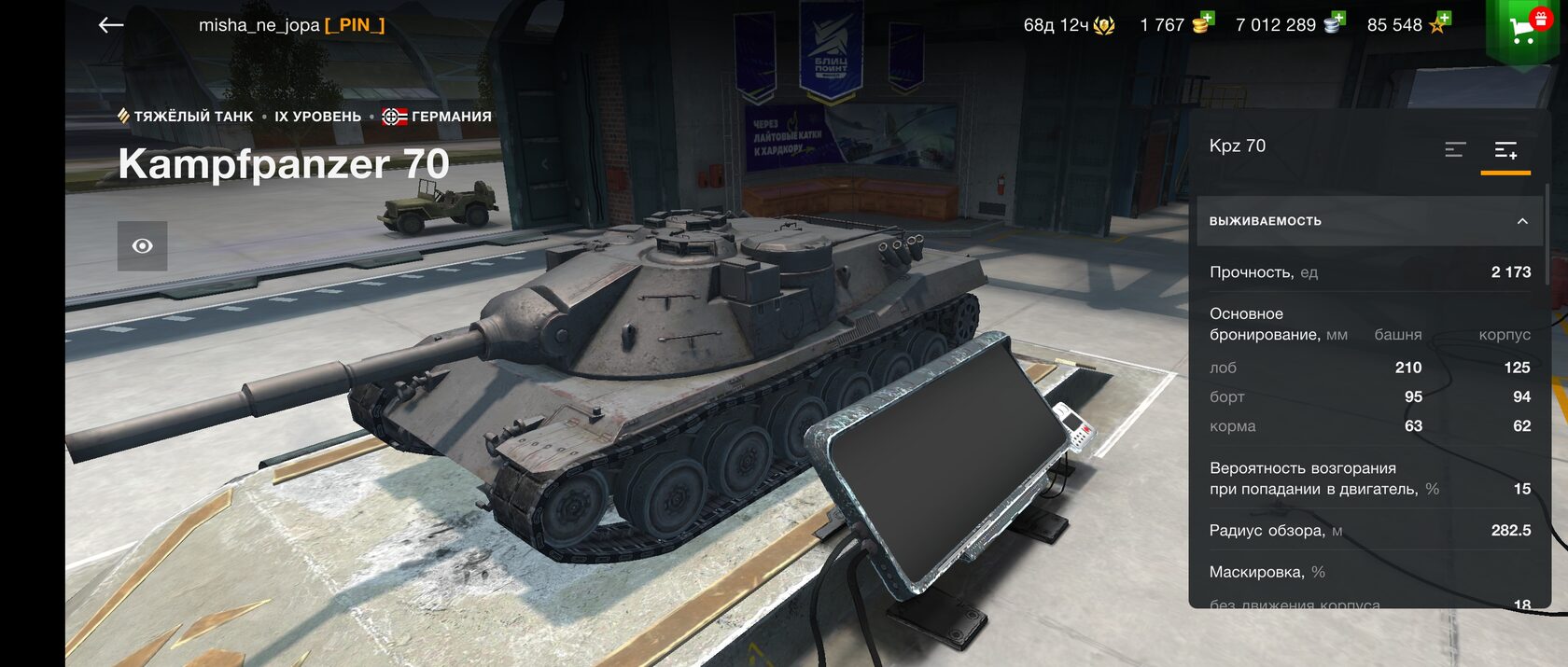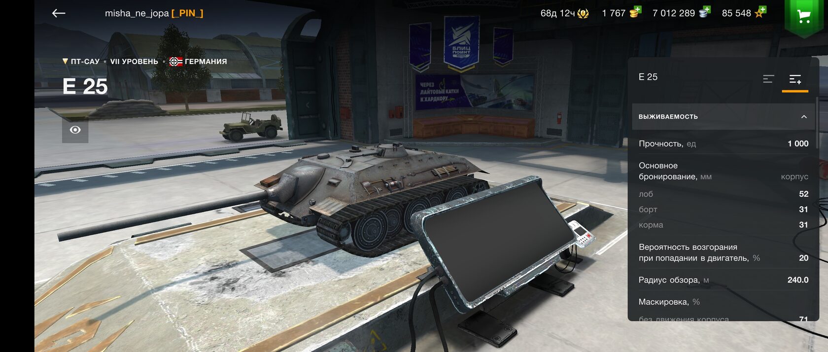 Самый сильный танк на 7 уровне, с уроном в 640 единиц с выстрела, на бронебойных, с отличным пробитием на кумулятивных снарядах в 250мм и сногсшибательном уроном на фугасах 960, и вроде бы, у танка есть отличная пушка, но у него есть еще и отличная точность, неплохая скорость 25 км/ч и неплохой броней, и все его характеристики делают его лучшим на уровне