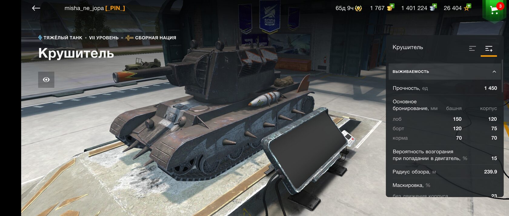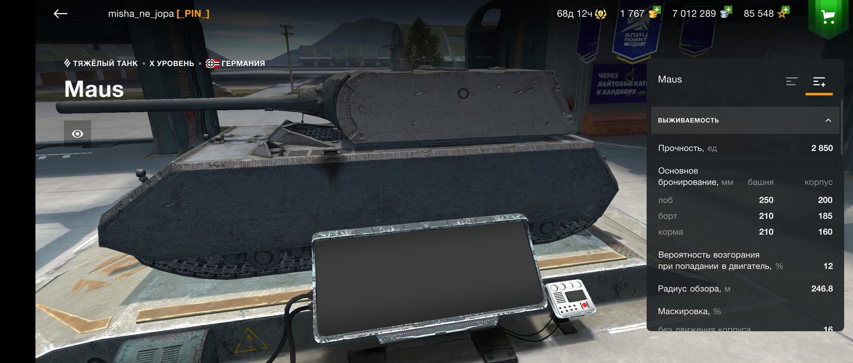 с невероятной массой в 188 тонн , со средней скоростью 23 км/ч, и невероятной 128мм пушкой с уроном 460 на базовых бронебойных распугивает всех противников со своего пути