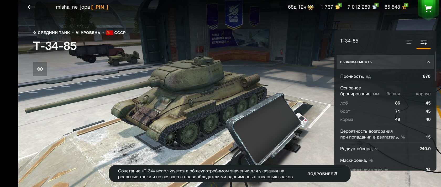 Старая, добрая легенда перенесенная на 6 уровень с уникальной 85мм пушкой, тяговооруженностью 14.6 л.с/т, уроном 160 на бронебойных снарядах