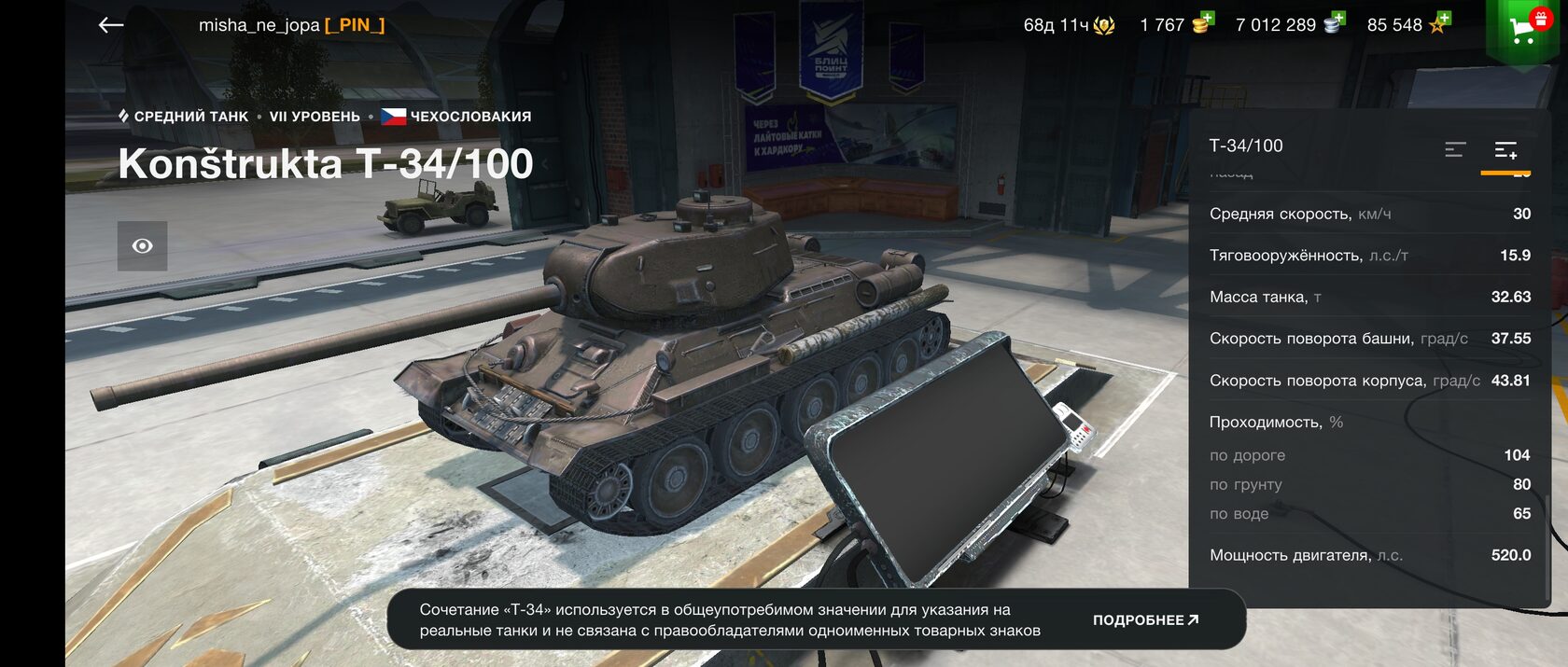 Чешский танк, со 100мм пушкой на 6 уровне, со средней скоростью 30 км/ч и тяговооруженностью 15.9 л.с/т